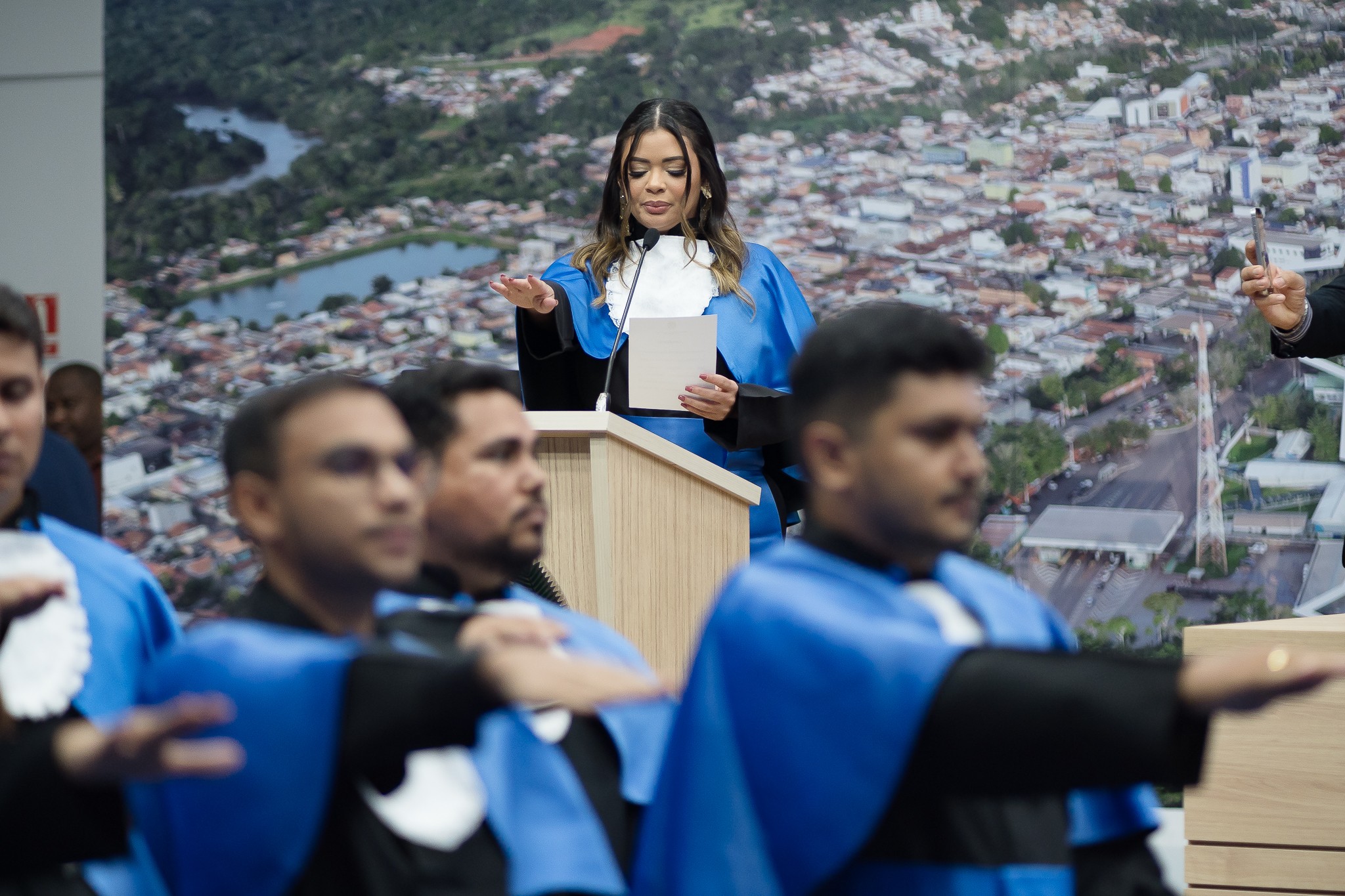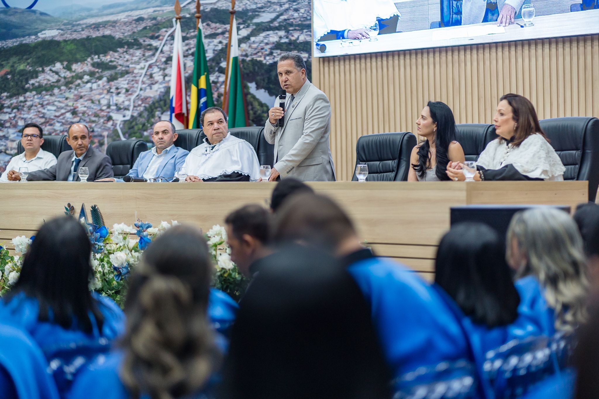 A cerimônia contou ainda com a presença dos vereadores Zé do Bode, Érica Ribeiro, Sargento Nogueira, Michel Carteiro, Sadisvan Pereira, Fred Sanção, Maquivalda Barros, Leandro do Chiquito e Elias da Construforte, que prestigiaram o momento histórico para a Casa Legislativa e para os concluintes.
