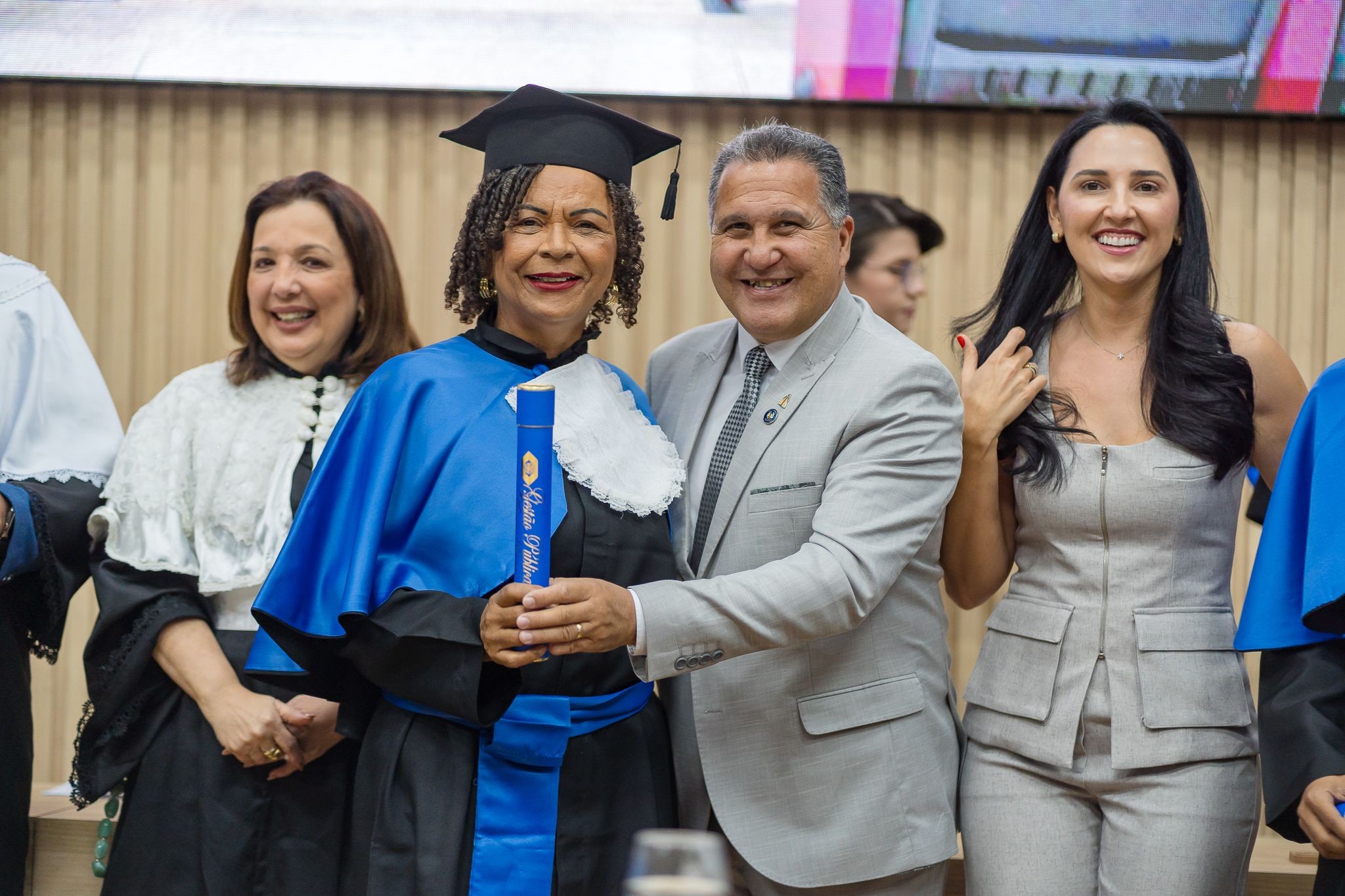 O ponto alto veio com a outorga de grau, concedida pelo presidente da Alepa, deputado Chicão, que, em ato solene, declarou: “Em nome da Lei e no uso das atribuições que me são conferidas, confiro o grau de Tecnólogo em Gestão Pública a todos os concluintes aqui presentes”